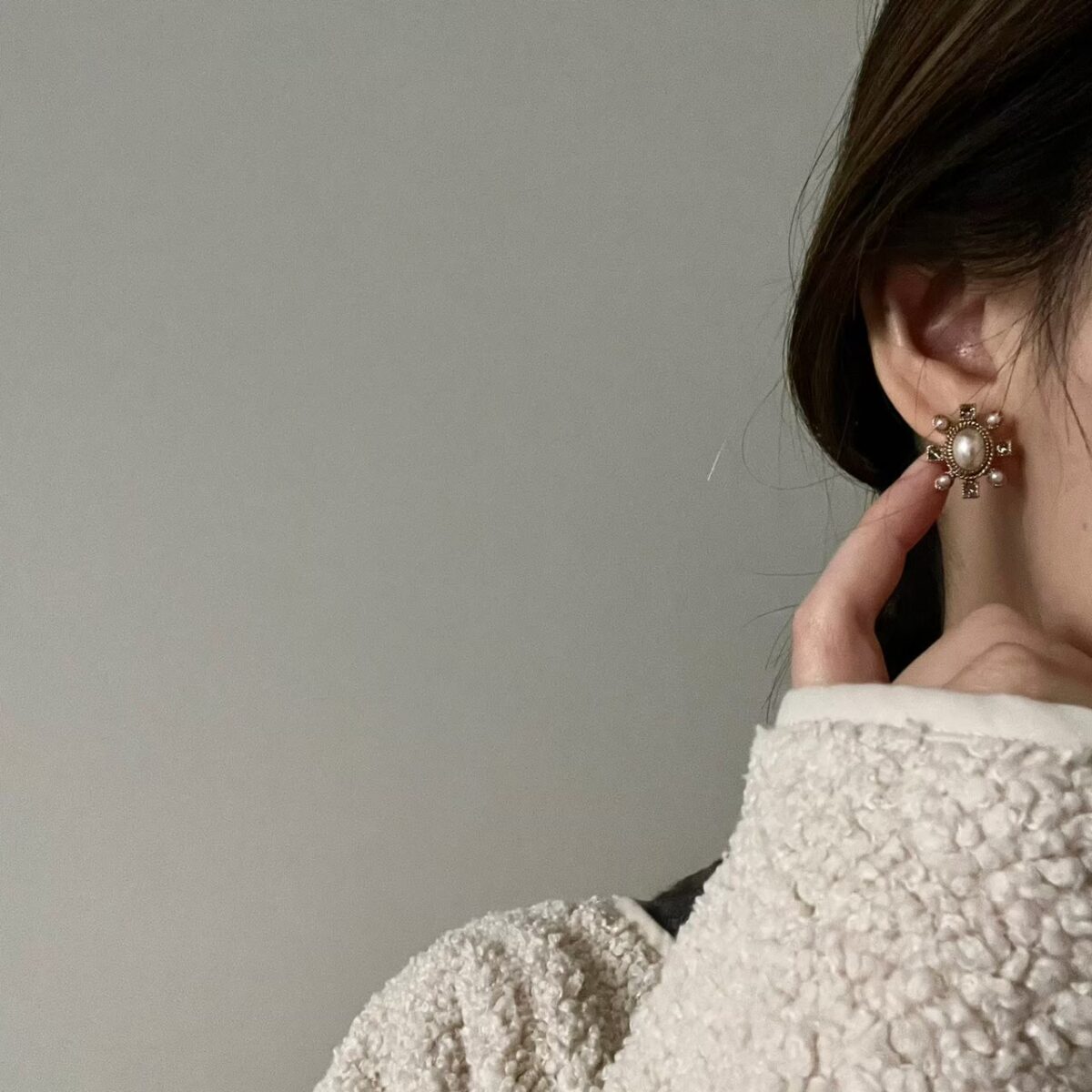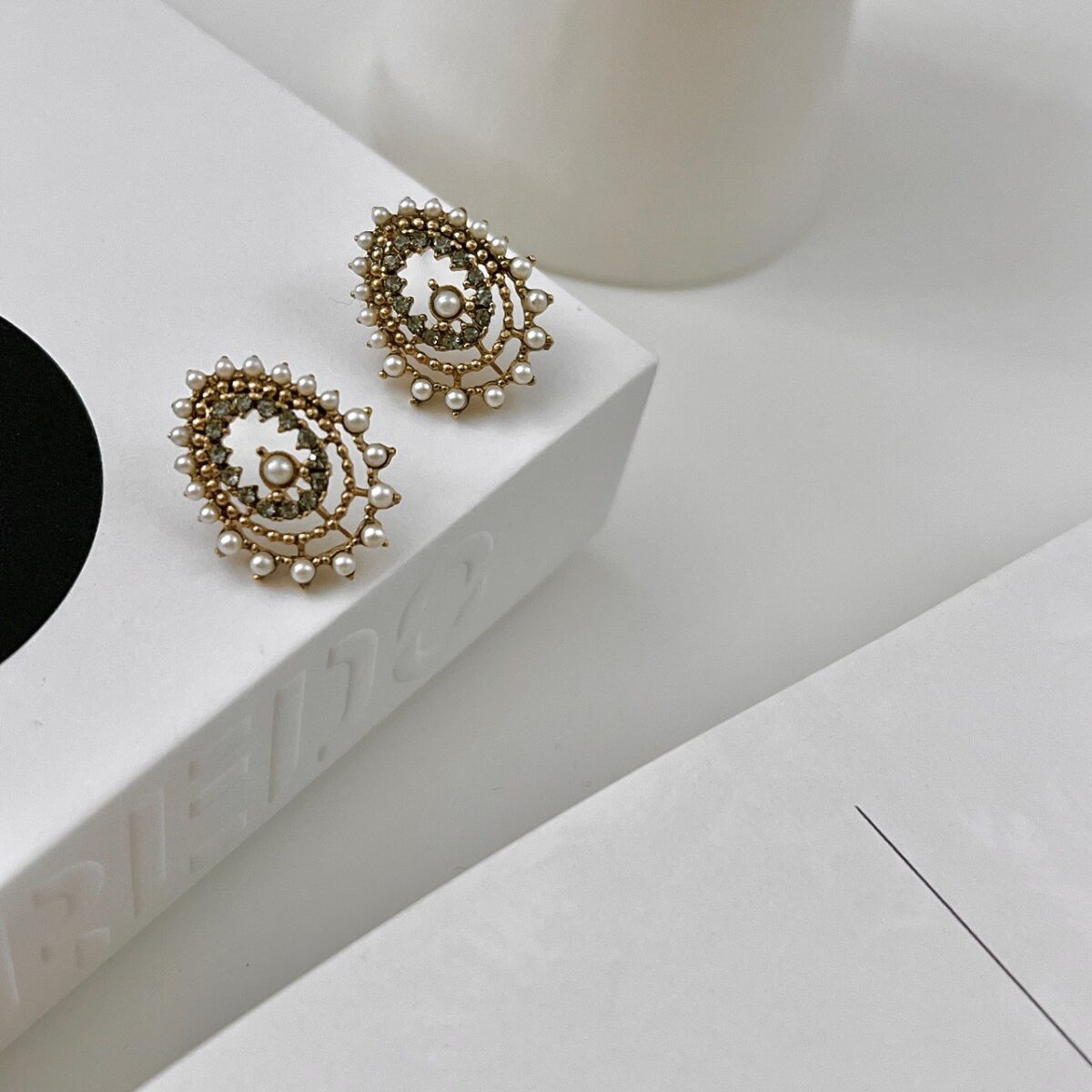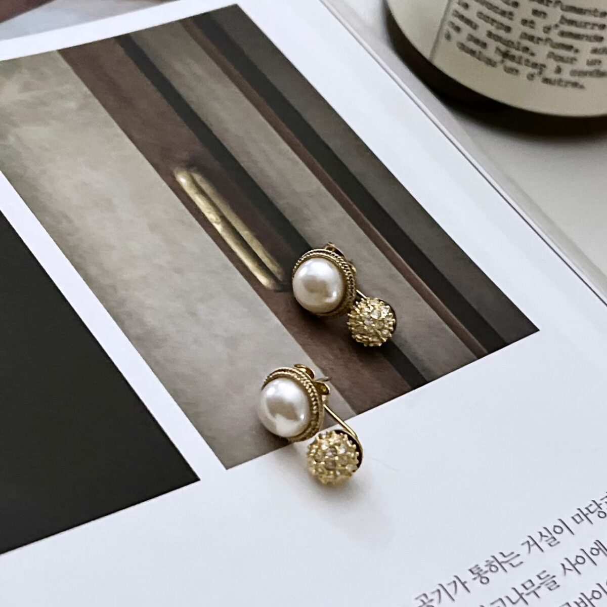復古小珍珠鑽圍邊珍珠耳環