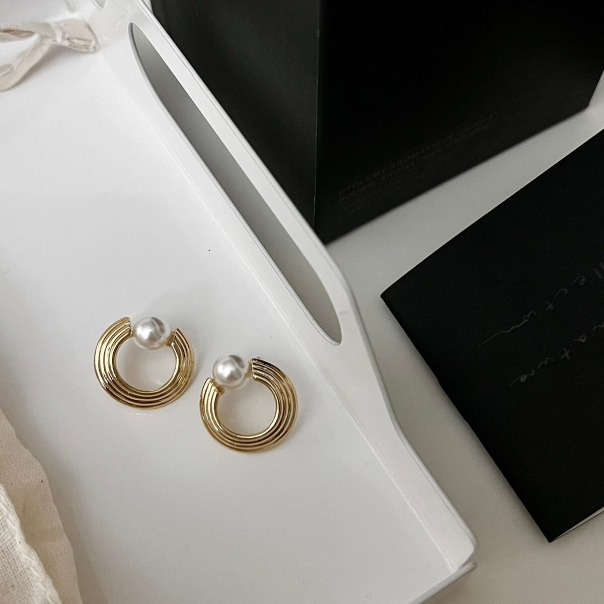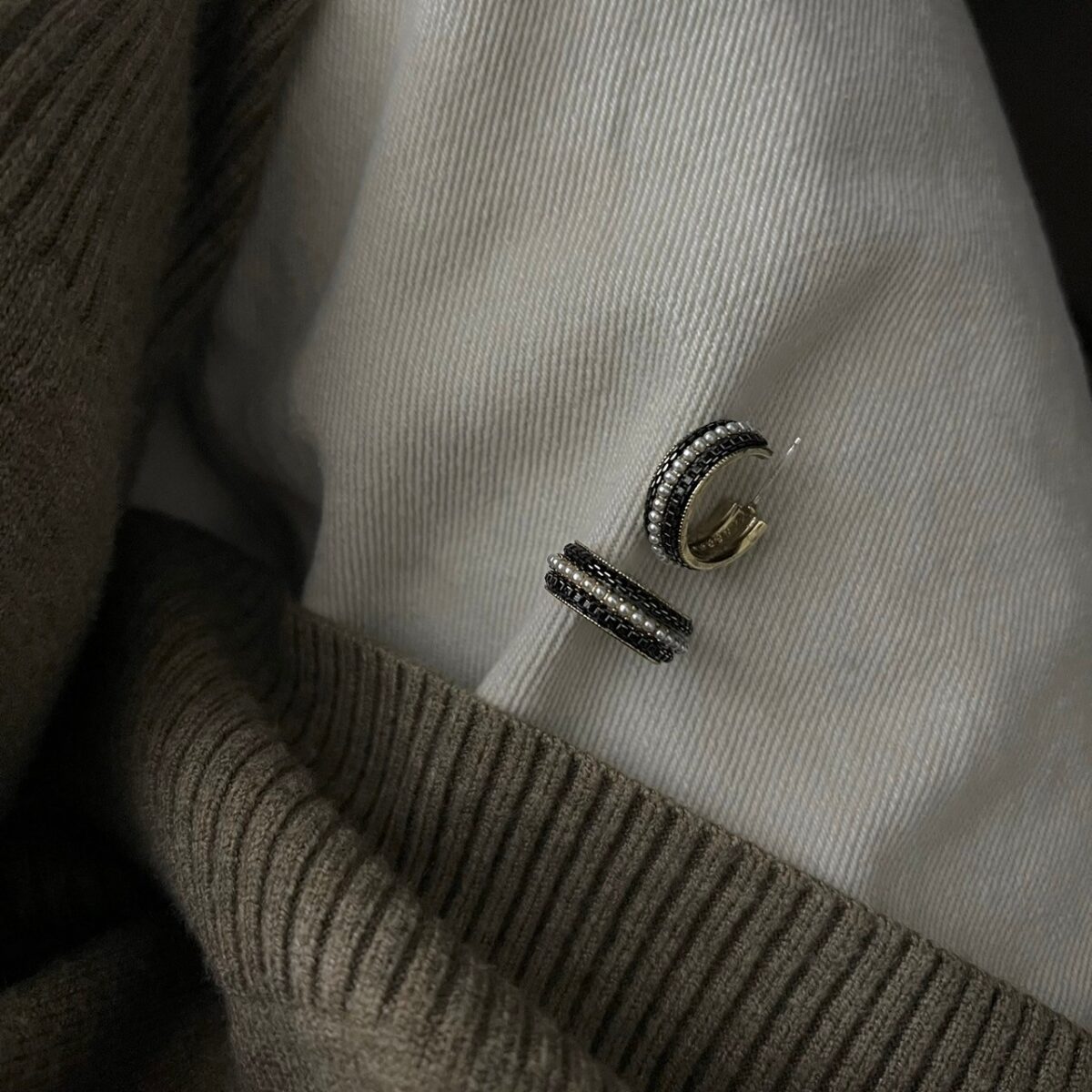 復古黑邊小珍珠耳圈