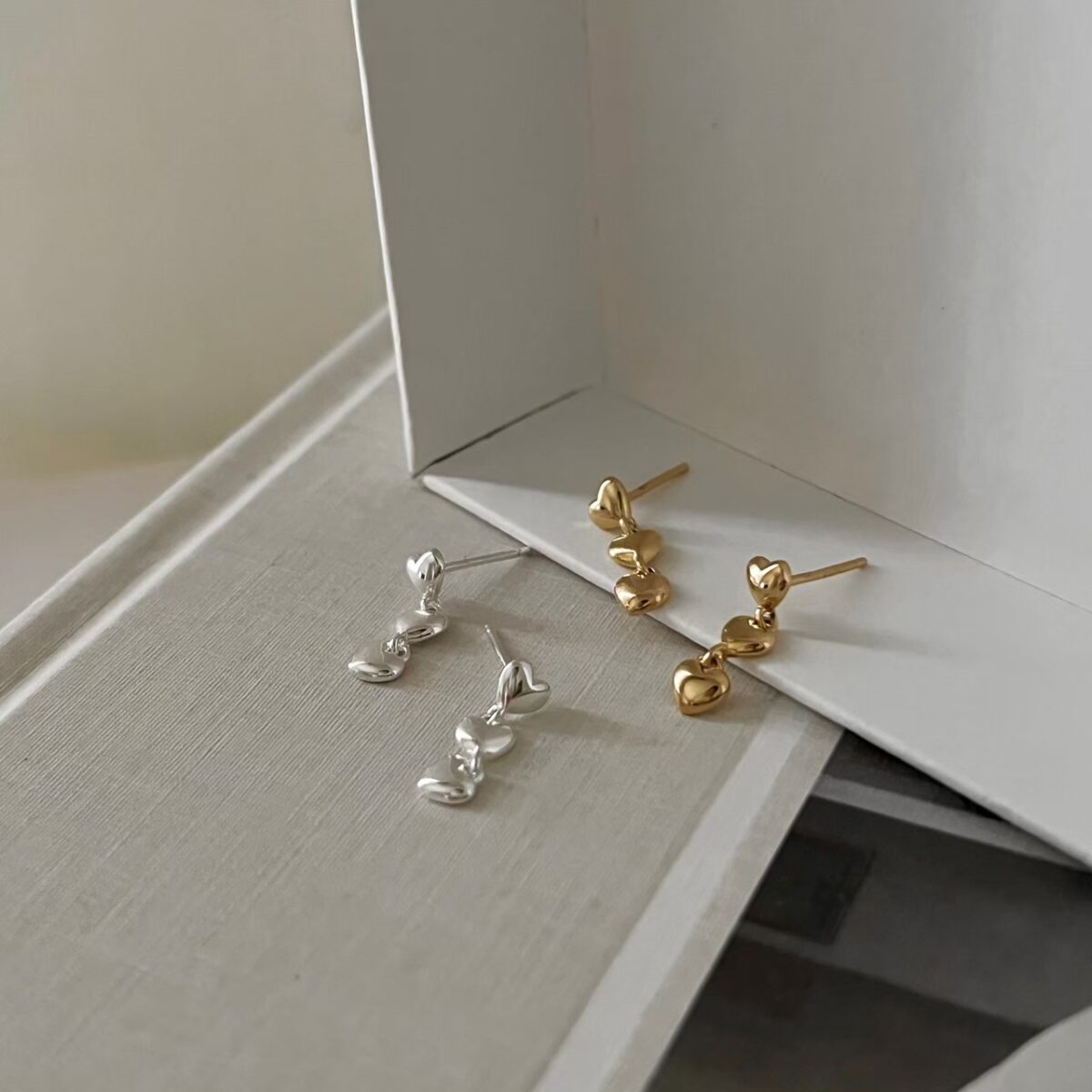 純銀小愛心三連發耳環