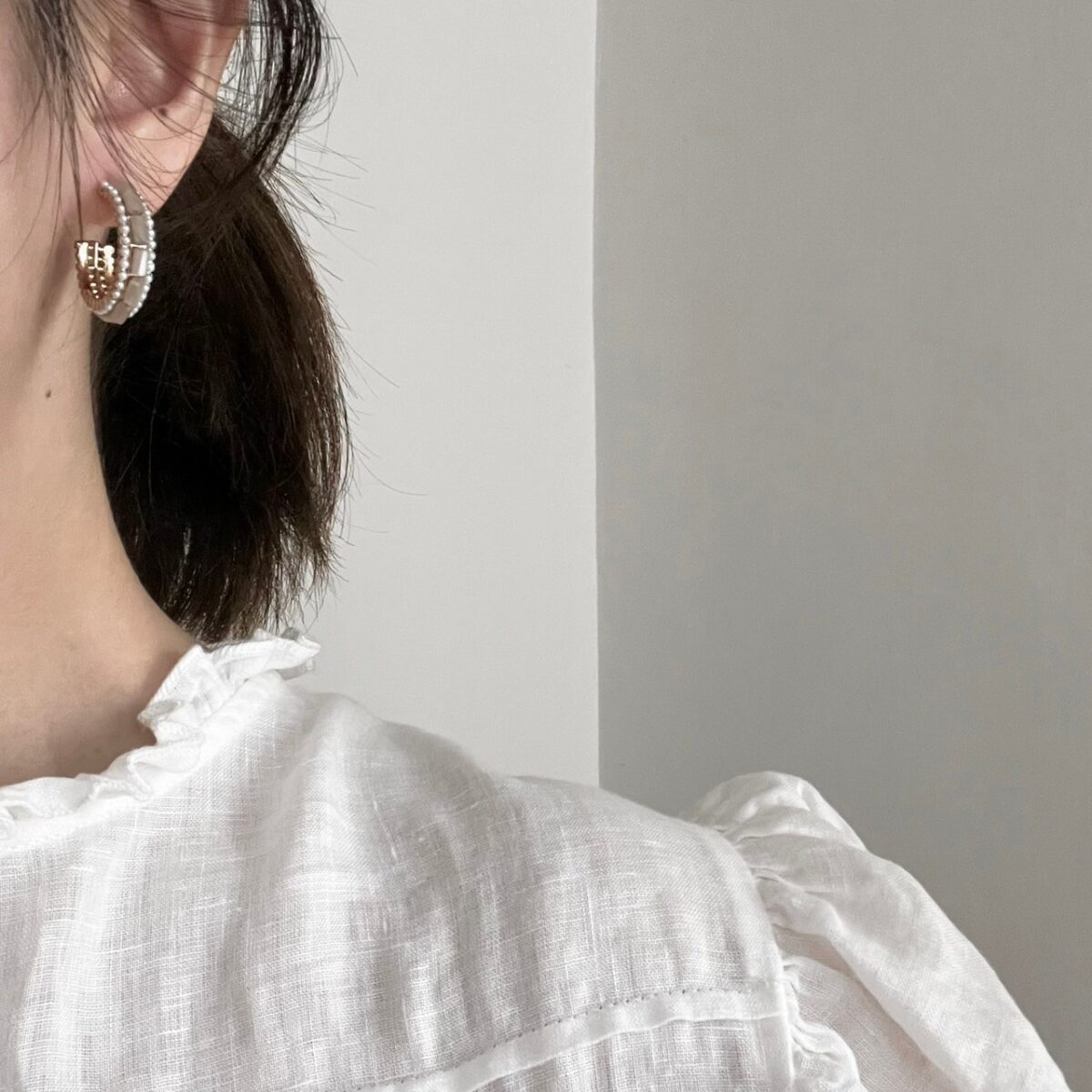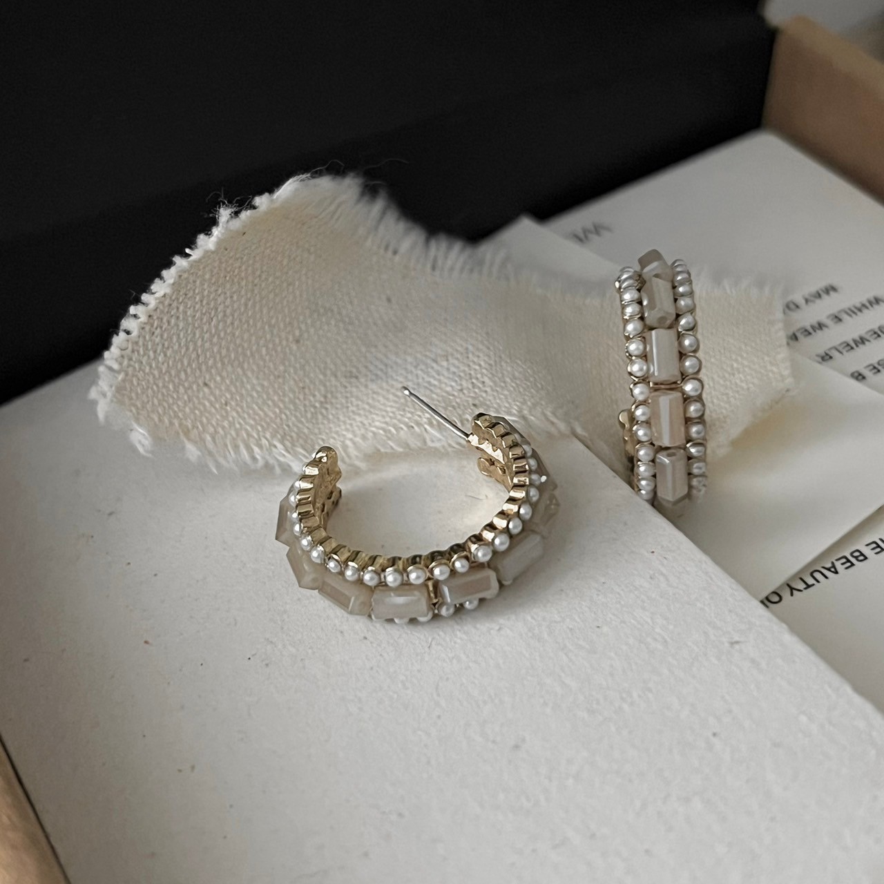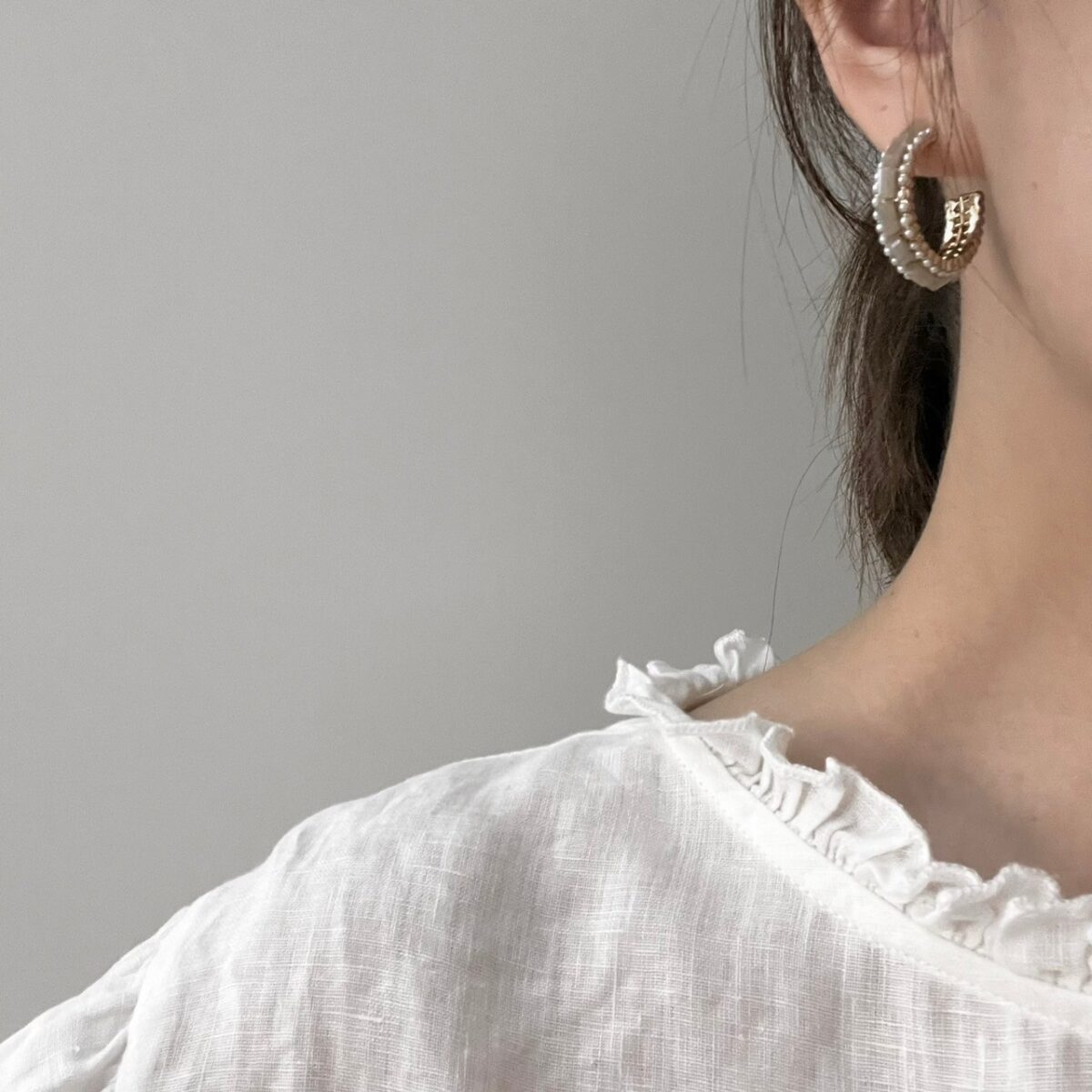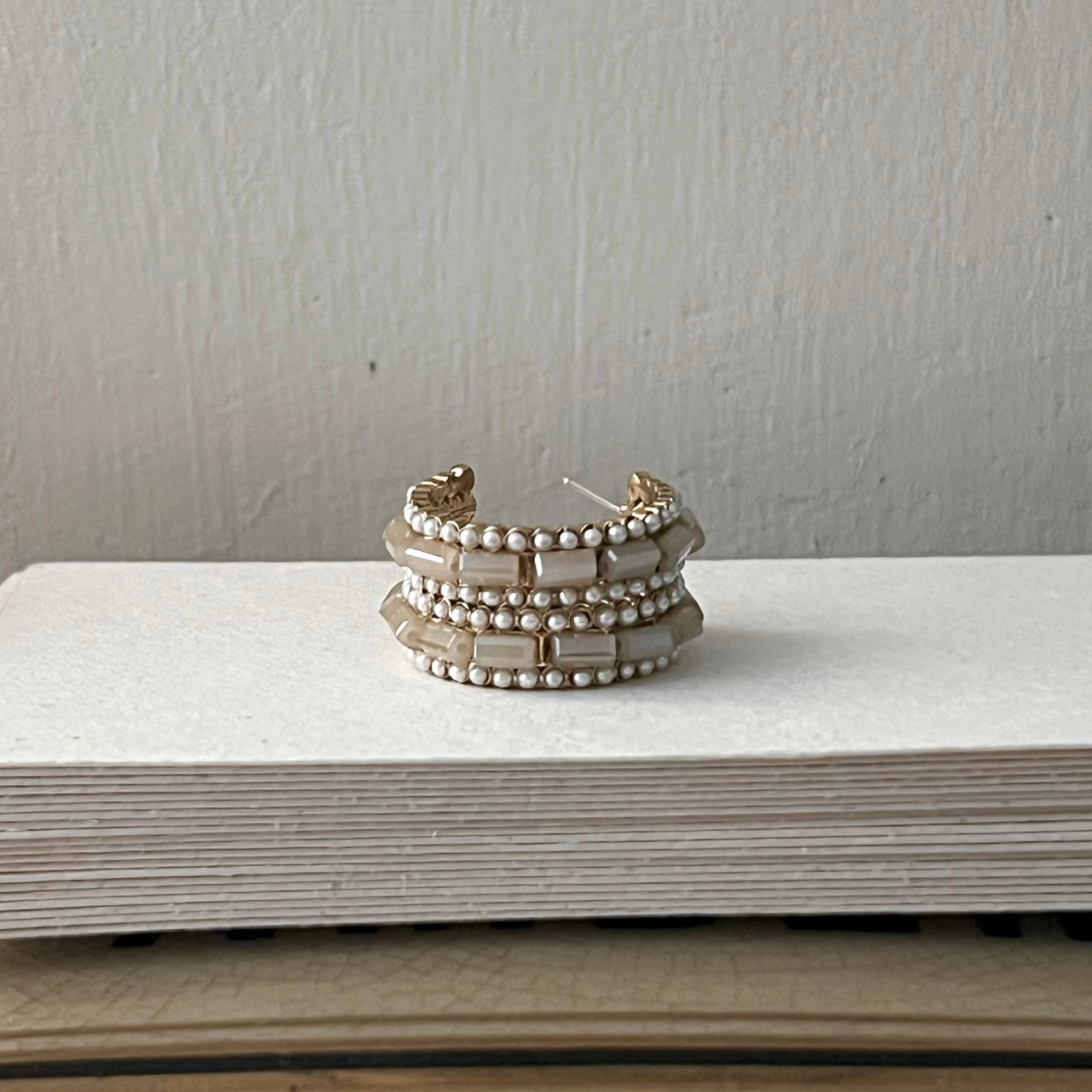 小珍珠裸米色圈圈耳環