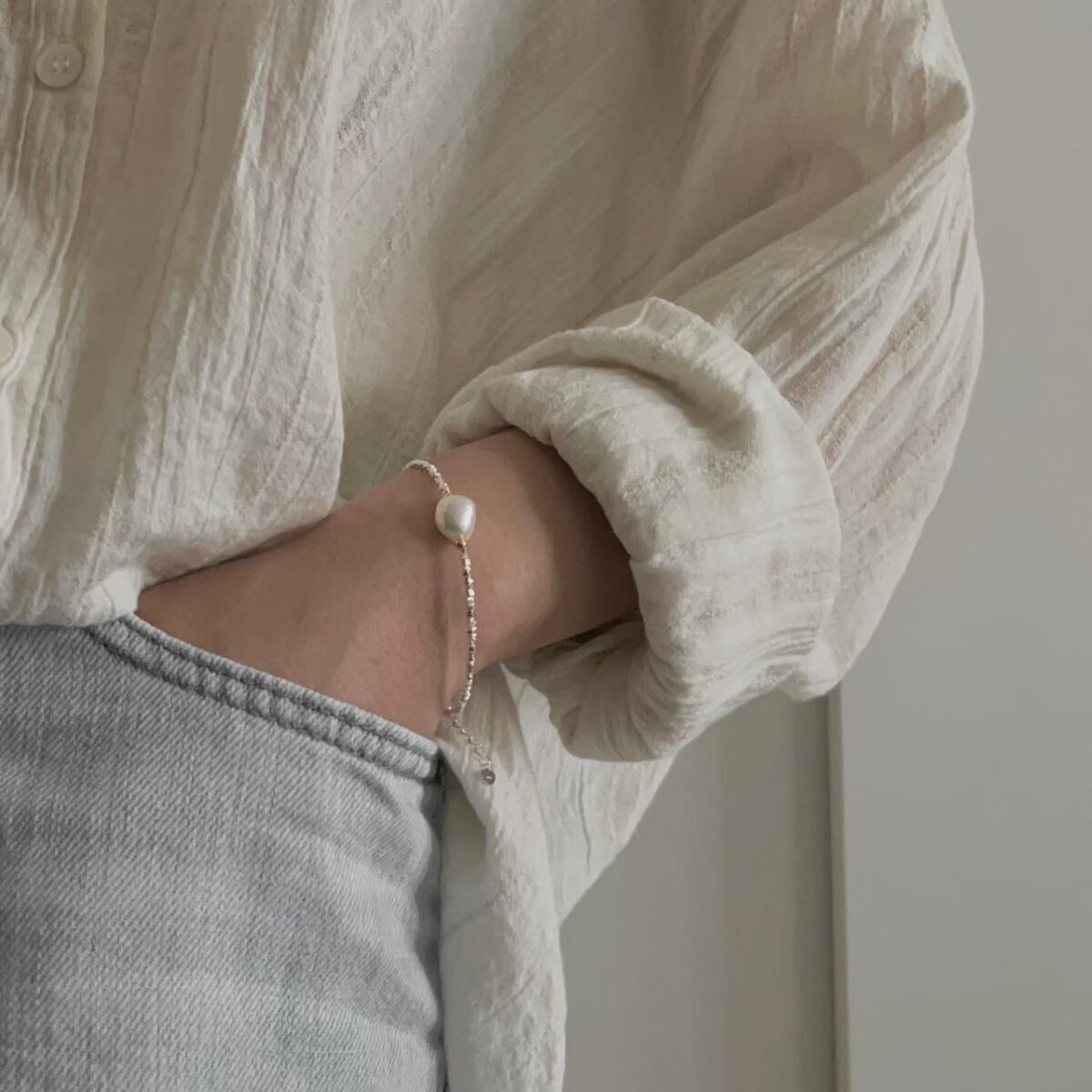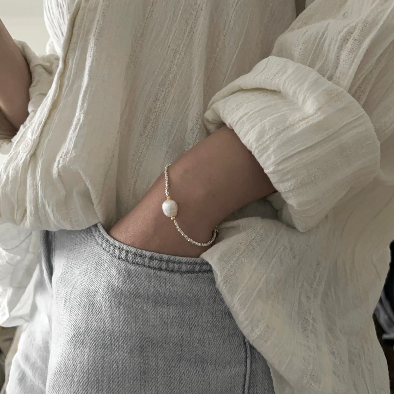 短袖季節免不了的珍珠手鍊