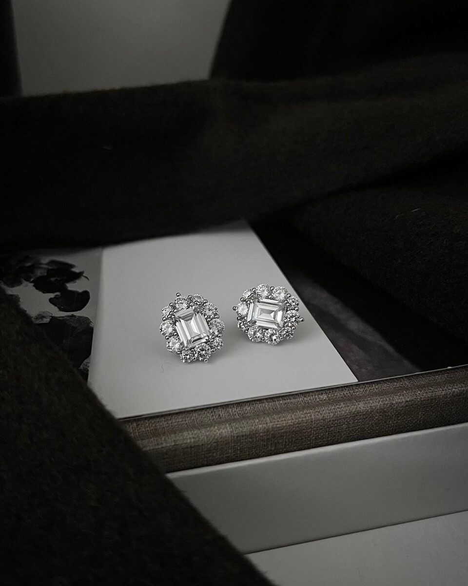 晶透小鑽徽章耳環