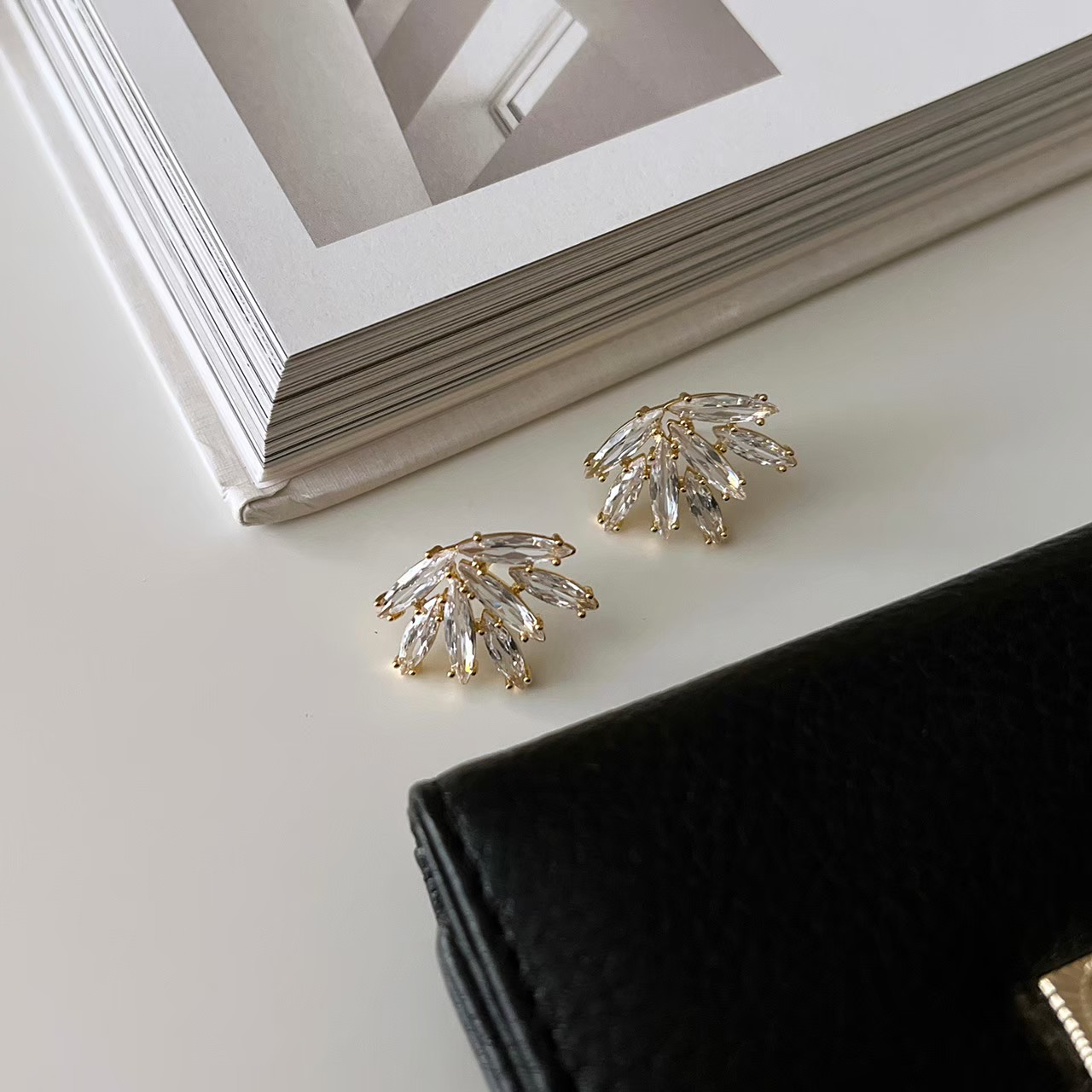滿鑽葉形耳環