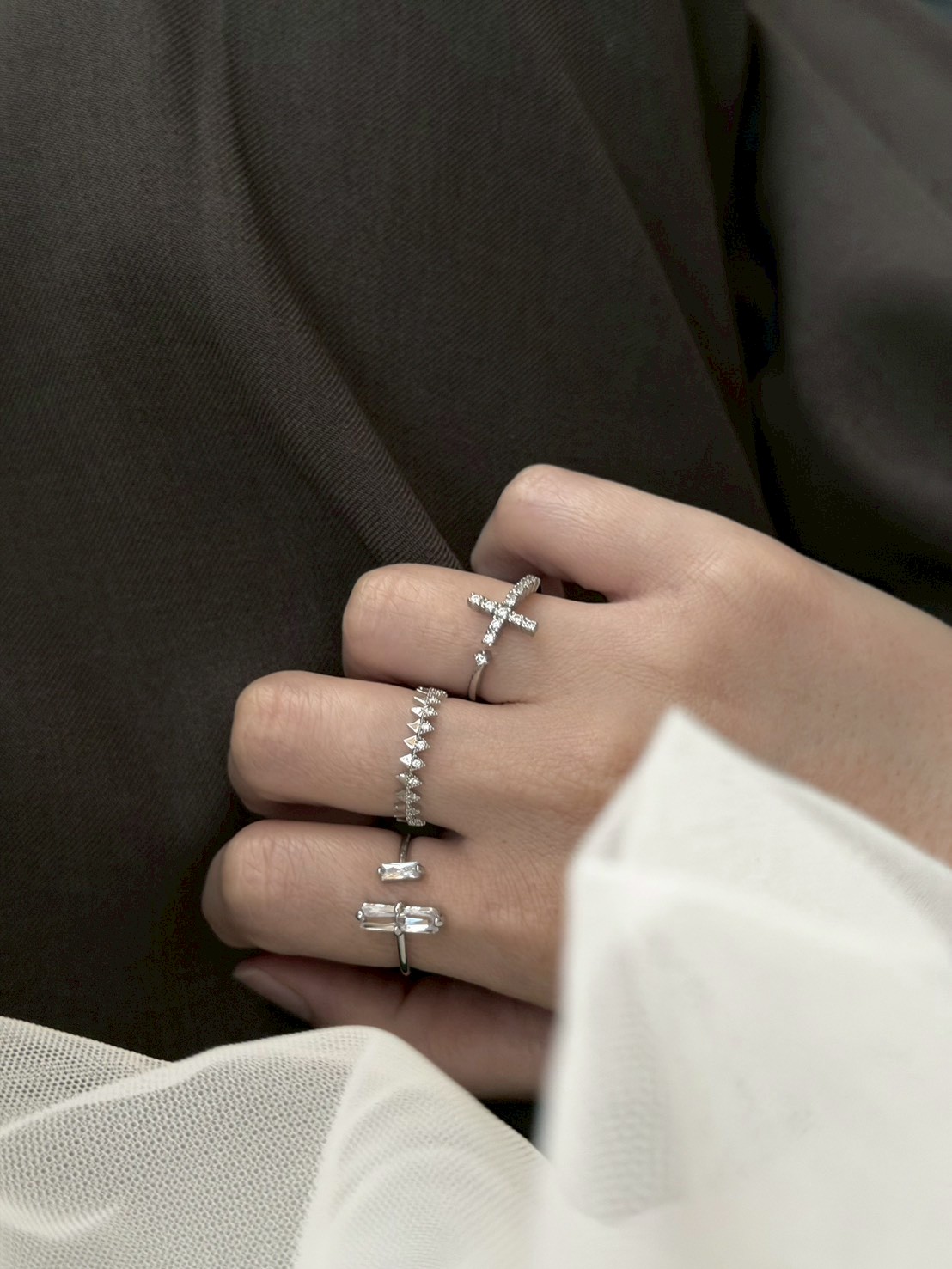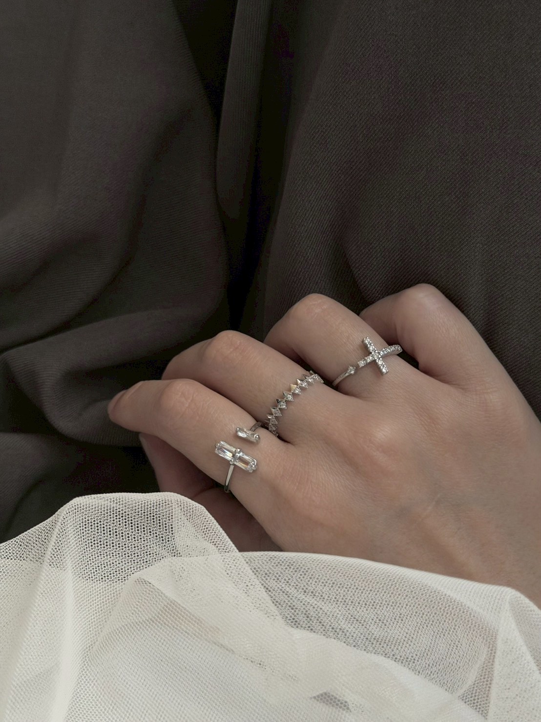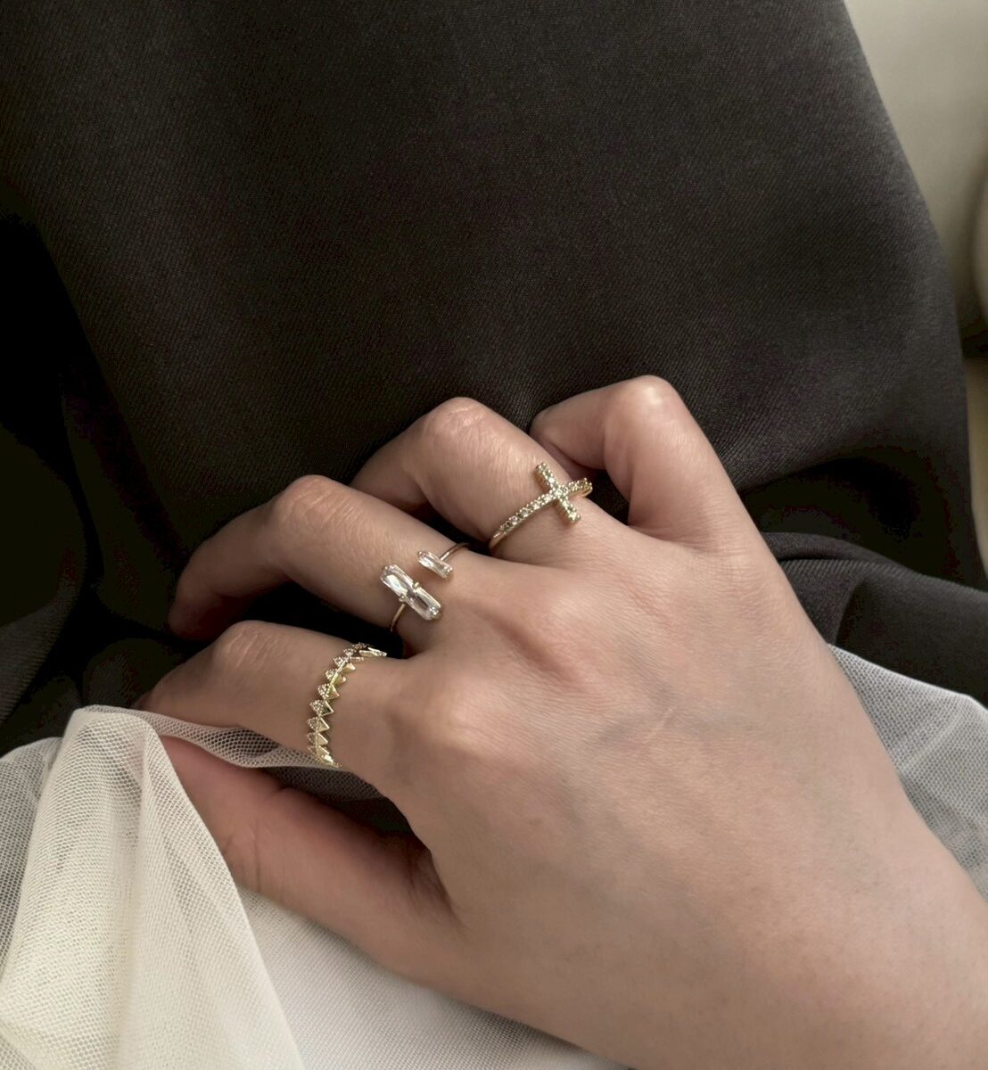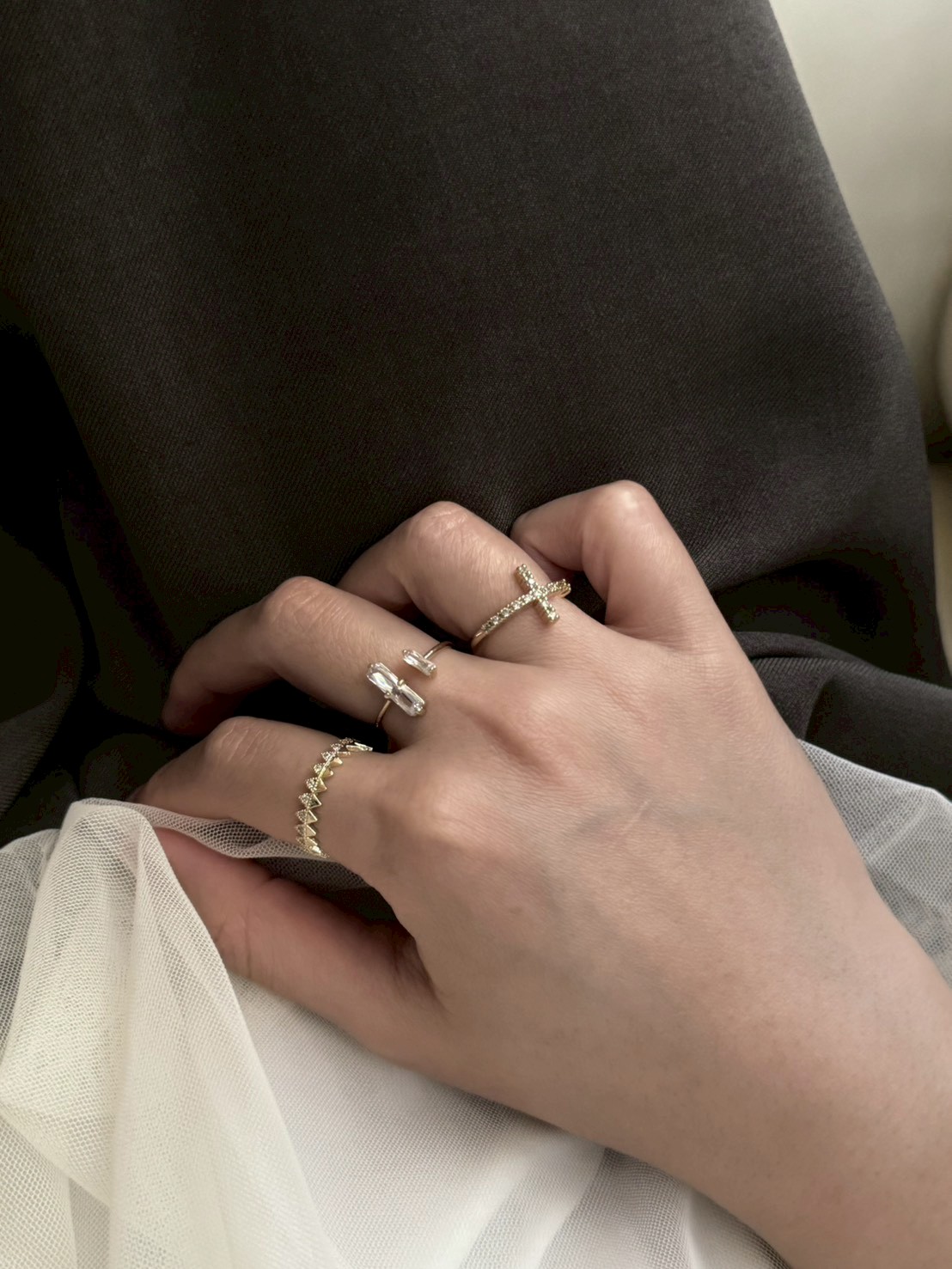 十字小鑽開口戒指