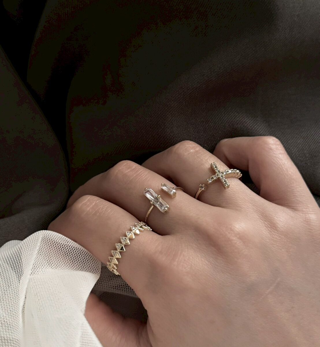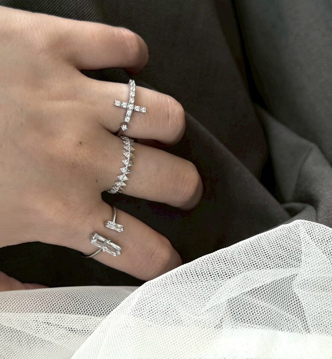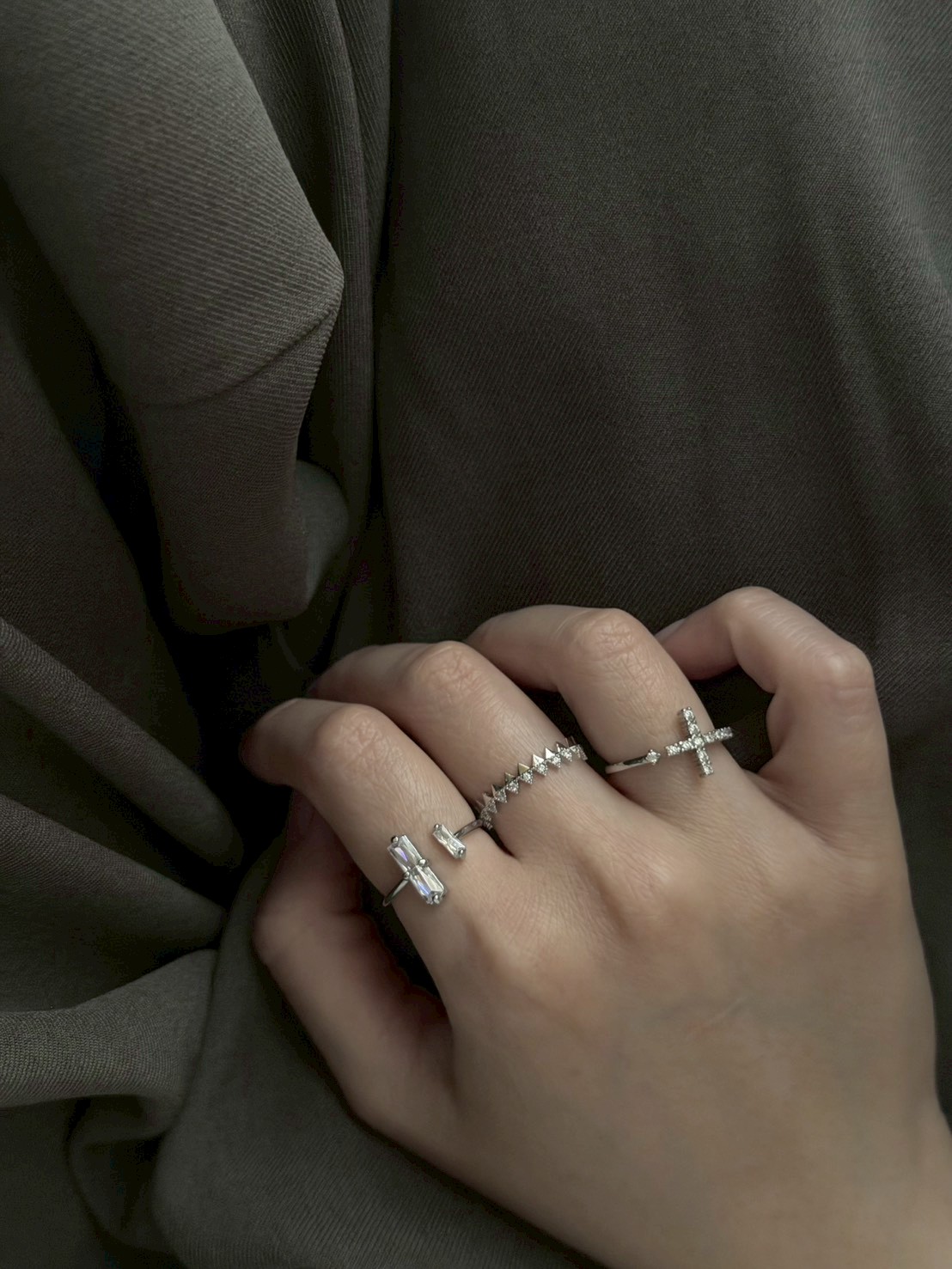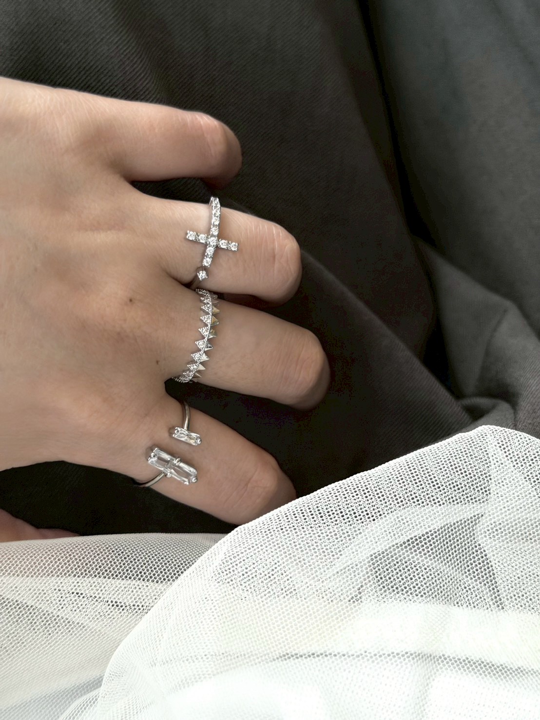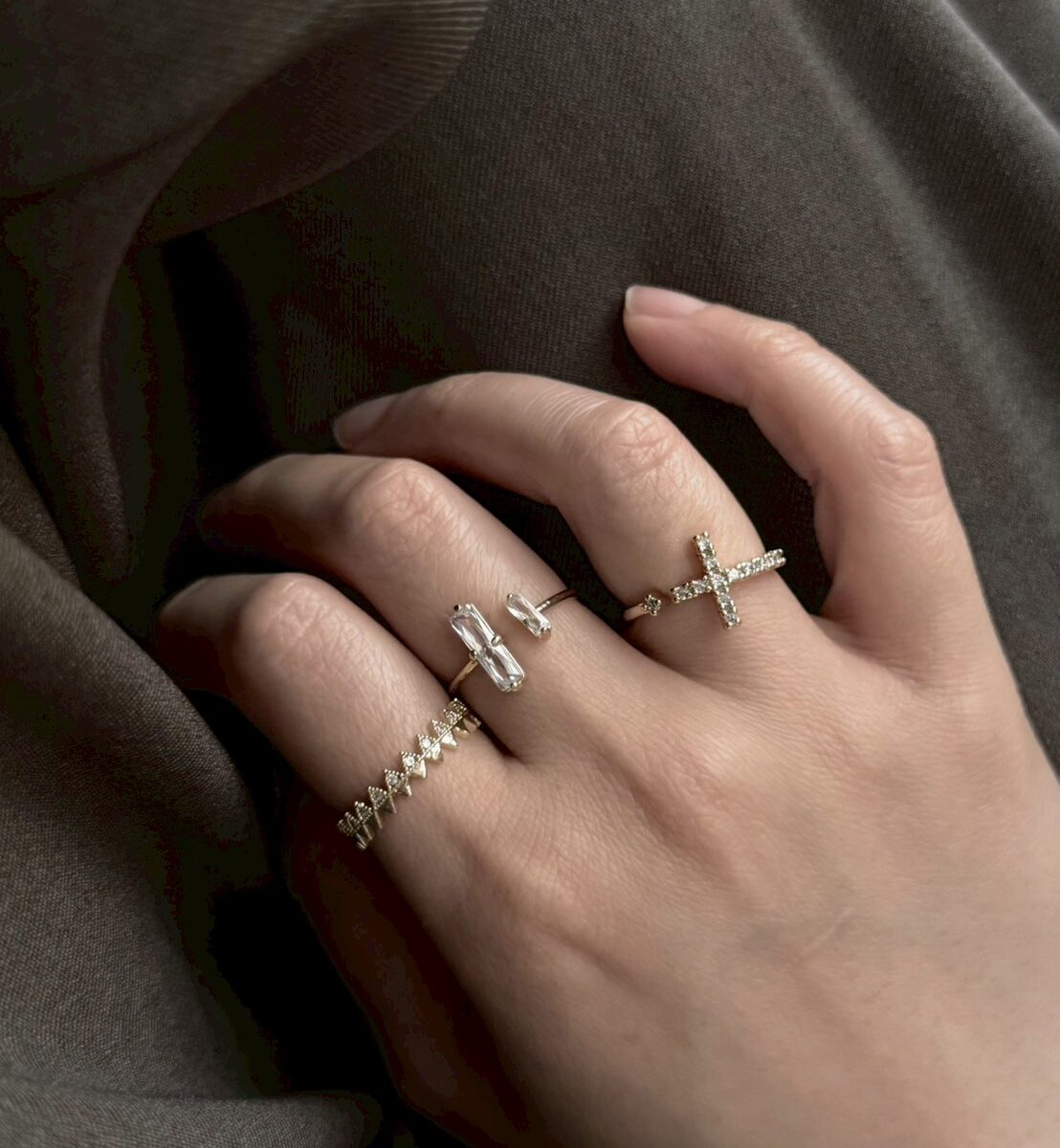 十字小鑽開口戒指
