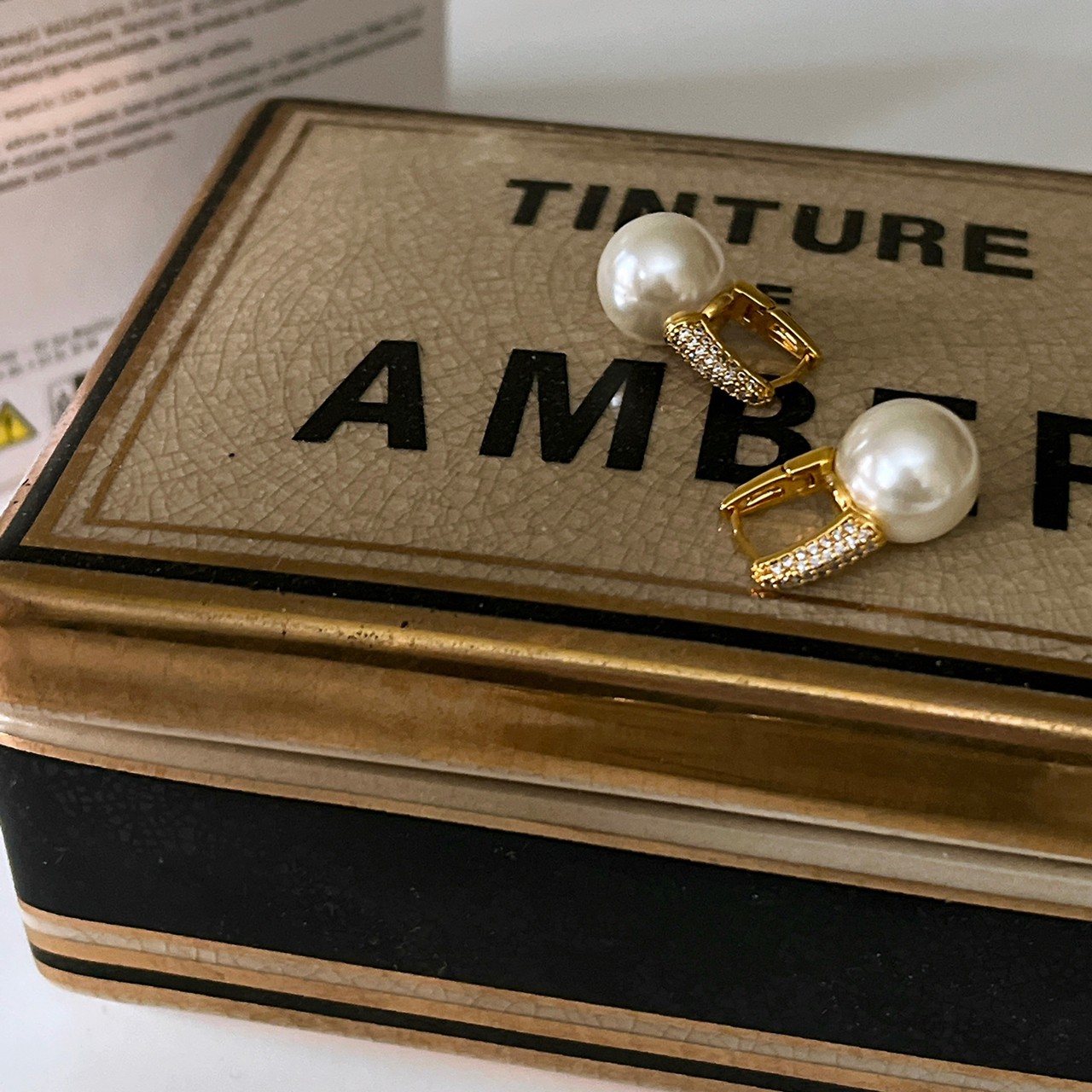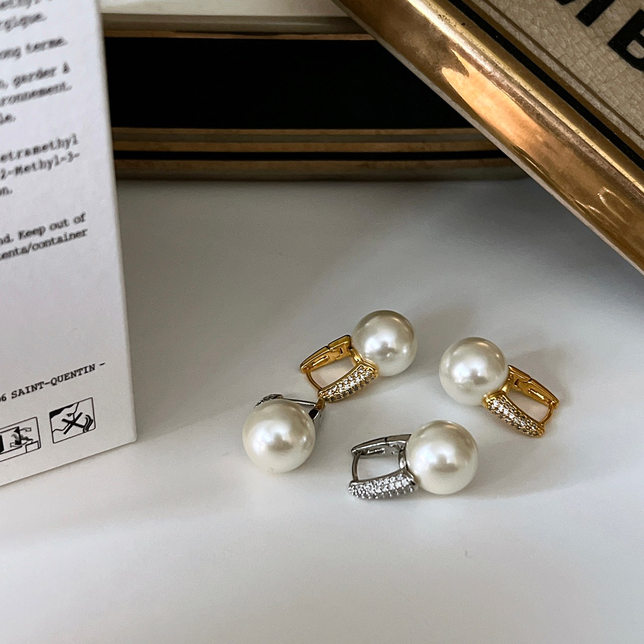 鑲鑽易扣珍珠耳環