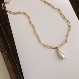 尺寸: 鍊長約46.5cm, 延長鍊約4.5cm, 珍珠約1x2cm