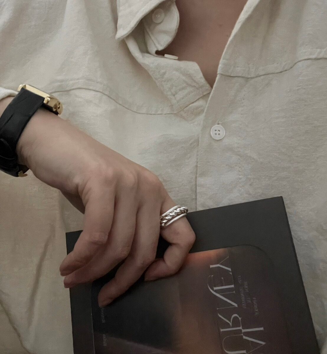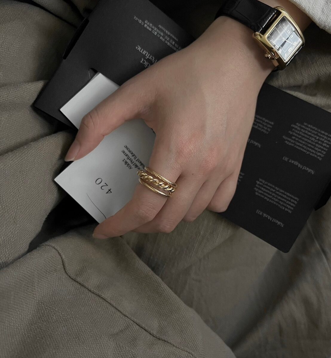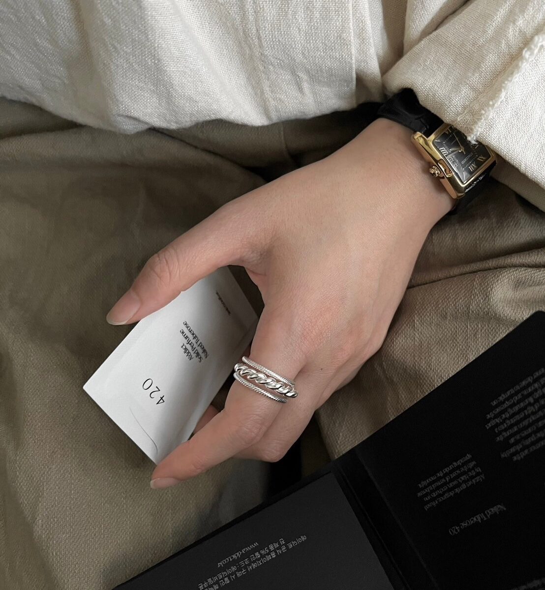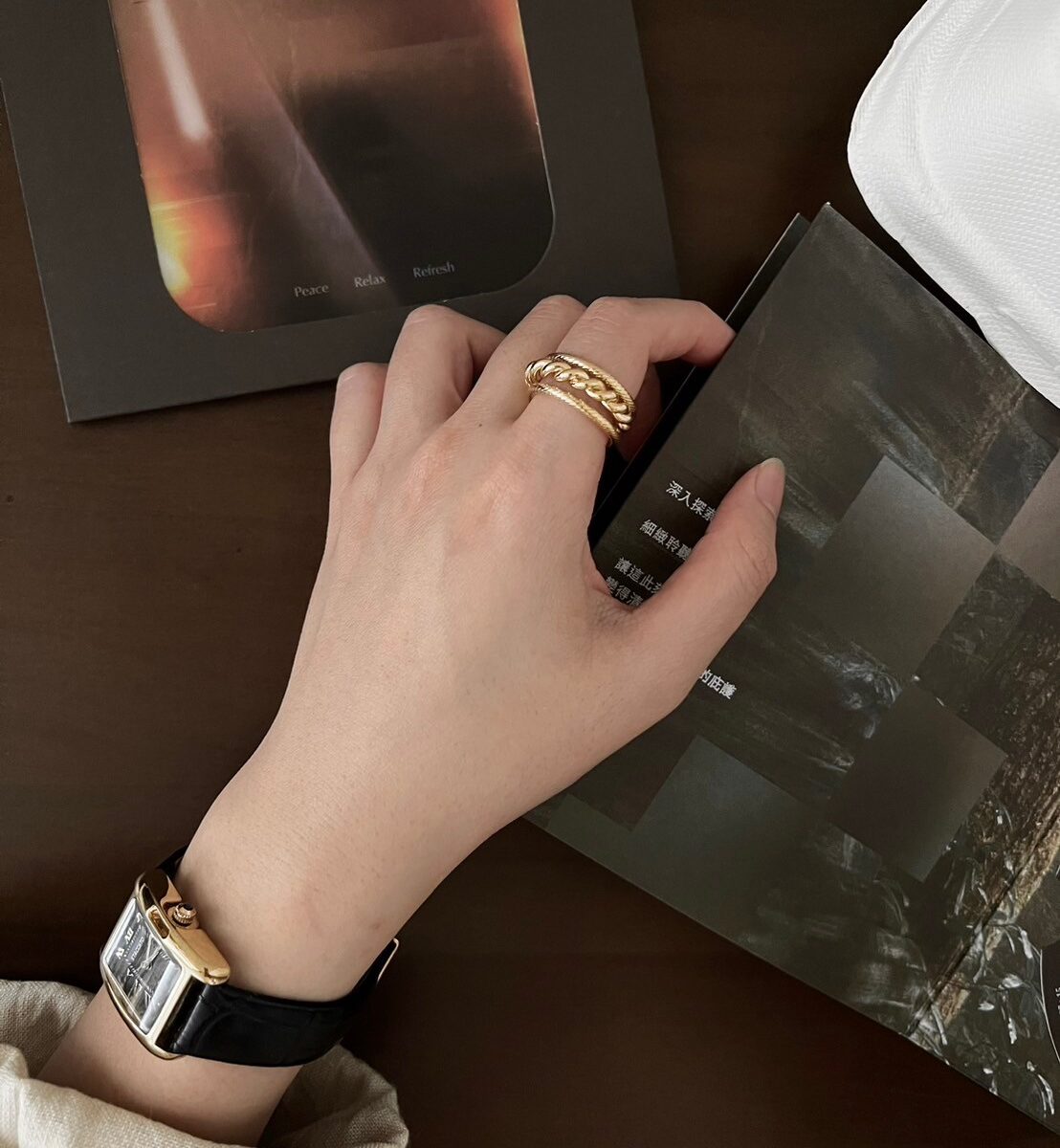寬版編織紋戒指