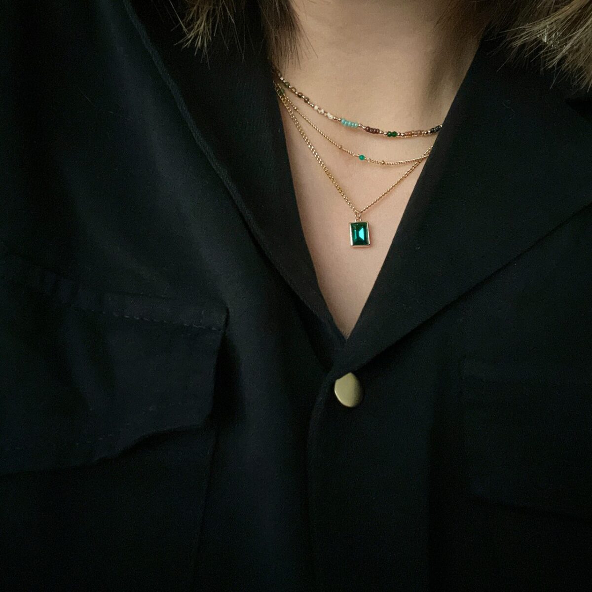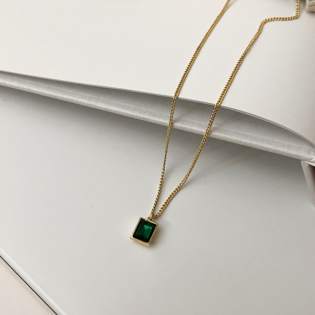 復古綠長方鋯石項鍊